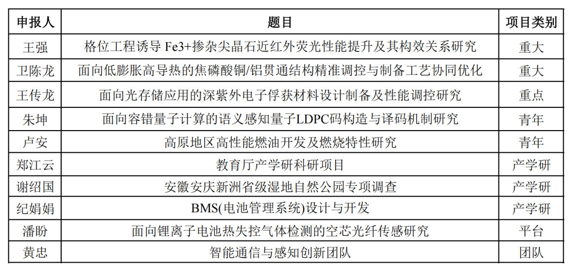 根据《安徽省教育厅关于开展2025年度科研项目申报工作的通知》(皖教秘科【2025】116号)精神,william威廉英国官网学术委员会于2025年12月5日召开推荐评审会,对本次申报的项目开展审核与评议。经专家组评审推荐、公司党委会研究、党政联席会决定通过。现予以公示。推荐排序名单如下: