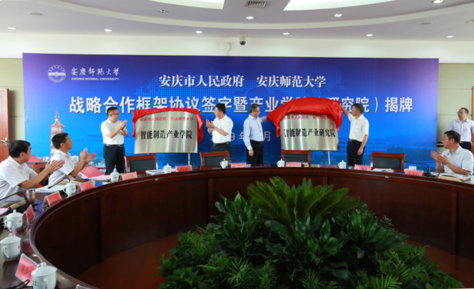 (2019年8月,公司与安庆市人民政府在龙山校区举行智能制造产业公司(研究院)揭牌仪式)